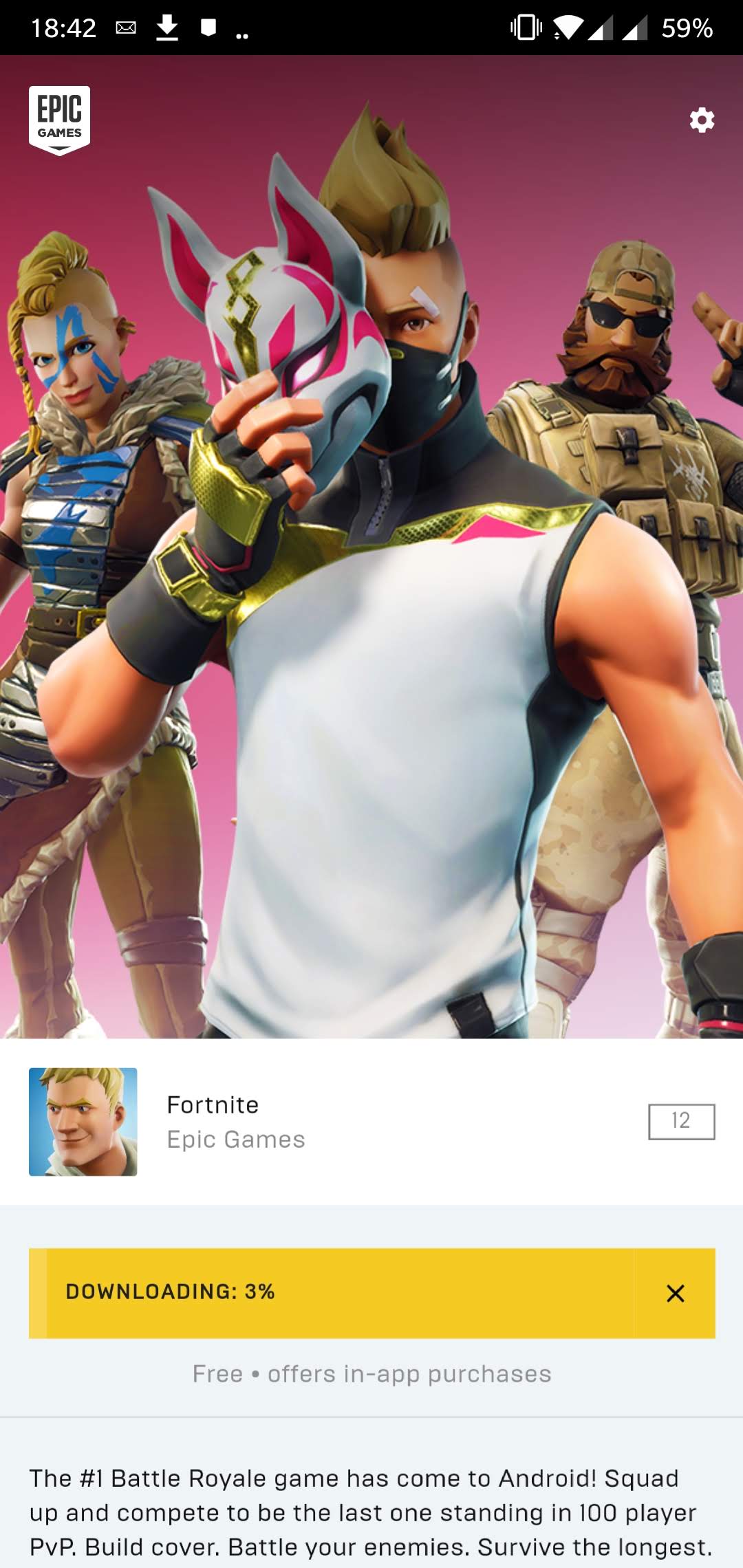 I’m sure many of you have heard of Fortnite. It’s an extremely popular game taking the world by storm, and there’s one particular reason why – it’s entirely free. It’s not everybody’s cup of tea, but it’s one of the biggest games out at the moment. It took off as a global phenomenon on PC, then expanded to iOS devices and now finally it’s on Android. Admittedly the list of devices it supports at the moment is pretty short, but Epic Games will certainly expand upon that in the future. There is one problem though for those on a supported Android device, and that is that the game is not officially available from the Google Play Store. Searching it there will simply yield this result.